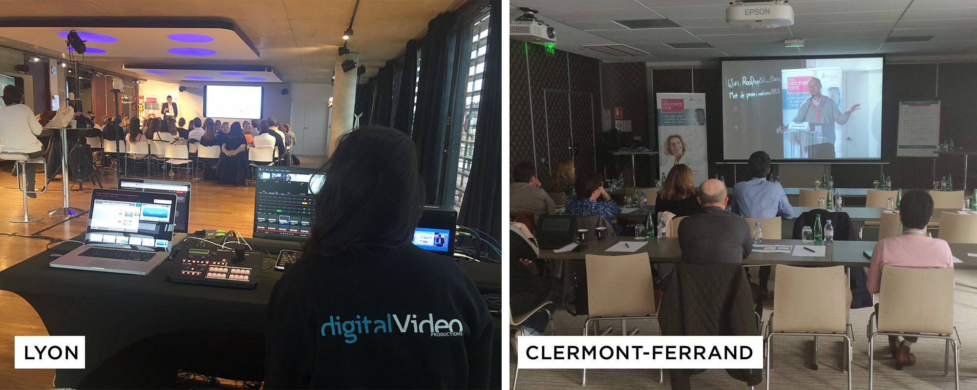 Digital Video était présent pour installer un dispositif technique de retransmission vidéo des échanges en direct à Clermont-Ferrand. Les participants n’ayant pas pu se déplacer jusqu’à Lyon ont pu assister à la réunion comme s’ils y étaient, et pouvaient interagir et poser des questions tout au long de la journée.